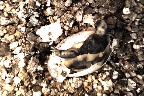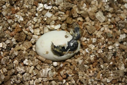 28. 7. 2019, po 55 dnech od snůšky, se klube první mláďátko. Než se zcela