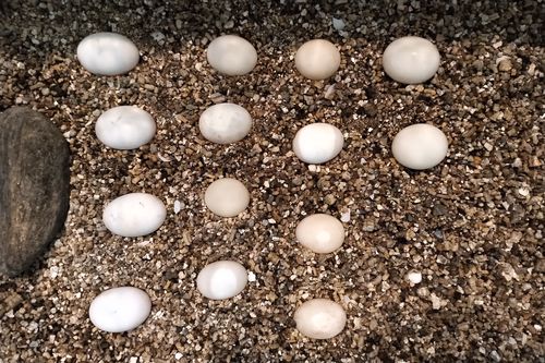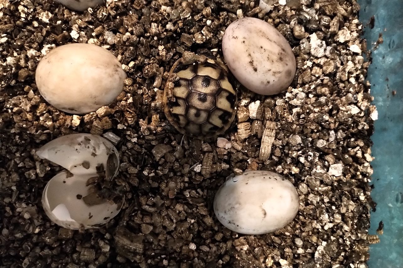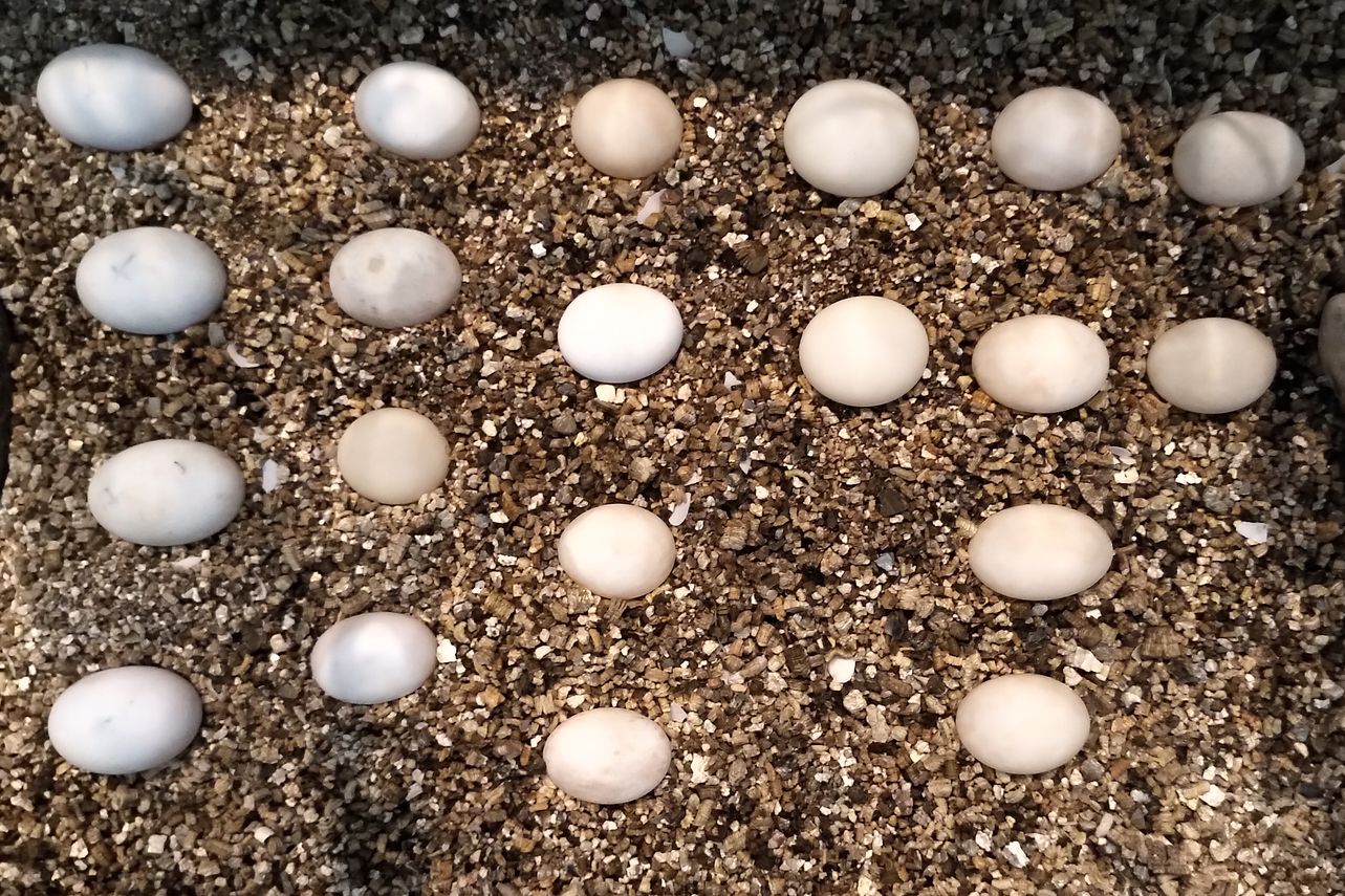 Takto vypadá snůška od dvou samic v červnu 2019. Větší vejce kolem 20 g