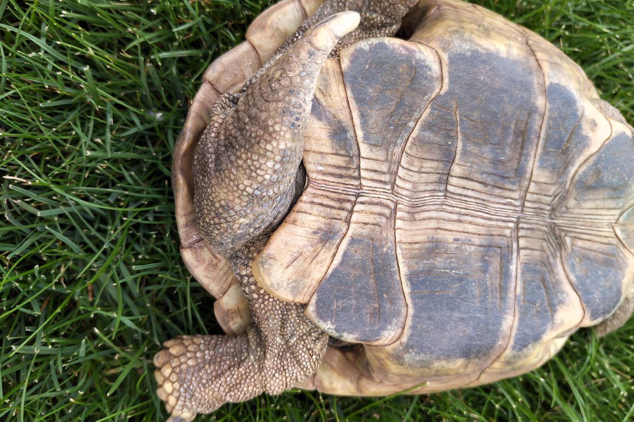 Ajajaj. Něco se nepovedlo. Želvička si obvykle na nohy pomůže sama,