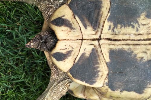Mohutný samčí ocas skrývá v sobě pohlavní rozmnožovací orgán.
