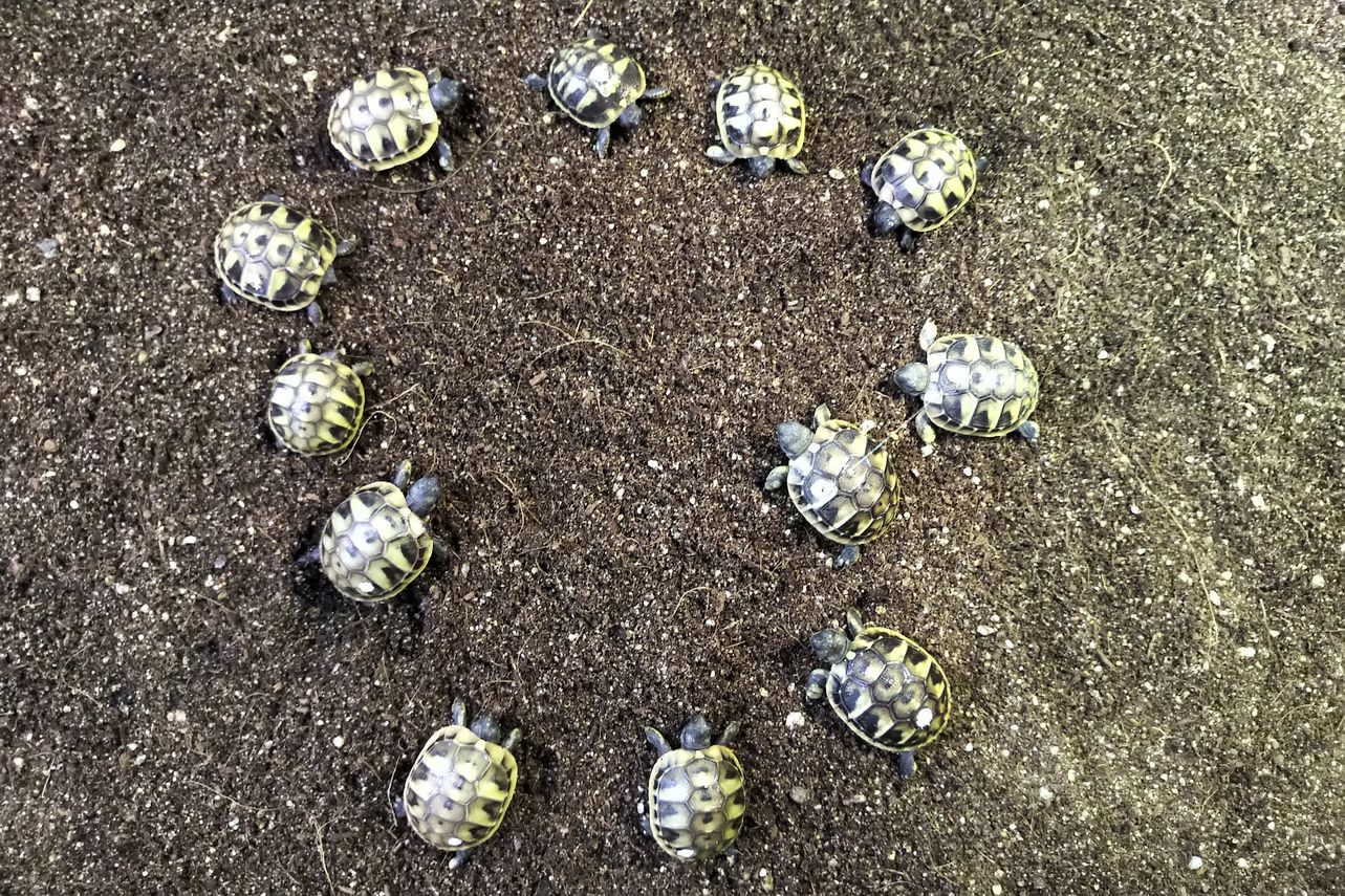 Želví mláďata stará 1 rok, 2 týdny a 1 den